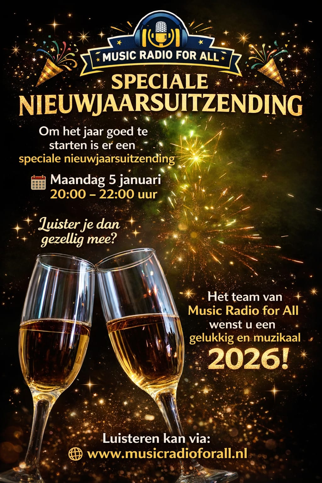 Het hele team van Music Radio for All wenst u een gelukkig, gezond en muzikaal 2026!